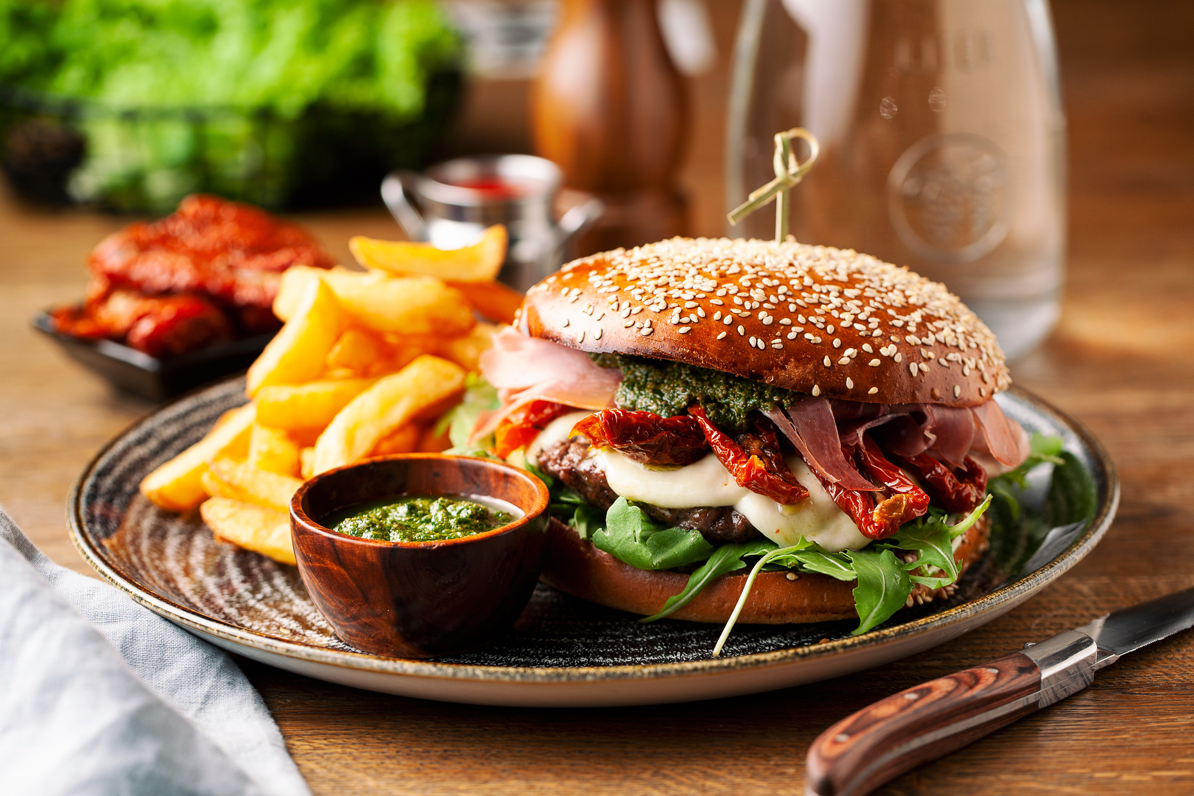 zdjęcia burgerów i steaków, zdjęcia dań mięsnych